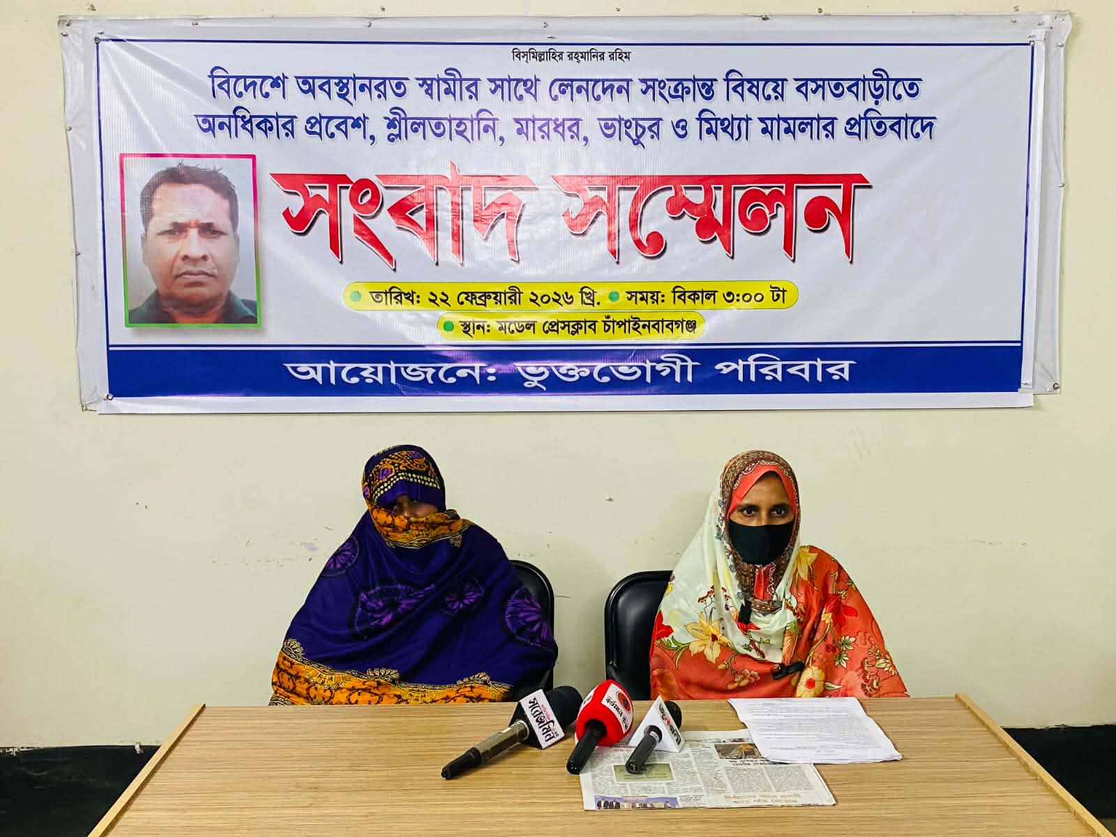 বিদেশে অবস্থানরত স্বামীর সাথে লেনদেন সংক্রান্ত বিষয়ে বসতবাড়ীতে অনধিকার প্রবেশ, শ্লীলতাহানি, মারধর, ভাংচুর ও মিথ্যা মামলার প্রতিবাদে সংবাদ সম্মেলন অনুষ্ঠিত হয়েছে।
