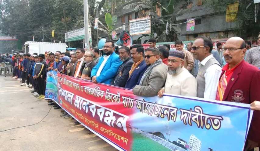 শহীদ চান্দু স্টেডিয়ামের সংস্কার ও আন্তর্জাতিক ক্রিকেট ম্যাচের দাবীতে বগুড়া স্পোর্টস রিপোর্টার্স এসোসিয়েশনের উদ্যোগে শনিবার দুপুরে ঐতিহাসিক সাতমাথায় বিশাল মানববন্ধন অনুষ্ঠিত হয়। সংগঠনের সভাপতি মোস্তফা মোঘলের সভাপতিত্বে অনুষ্ঠানে বক্তারা বলেন, পতিত ফ্যাসিবাদী সরকার গত ১৭ বছর দেশের সেরা উইকেট সমৃদ্ধ শহীদ চান্দু স্টেডিয়ামের প্রতি চরম অবিচার ও বৈষম্য করেছে।