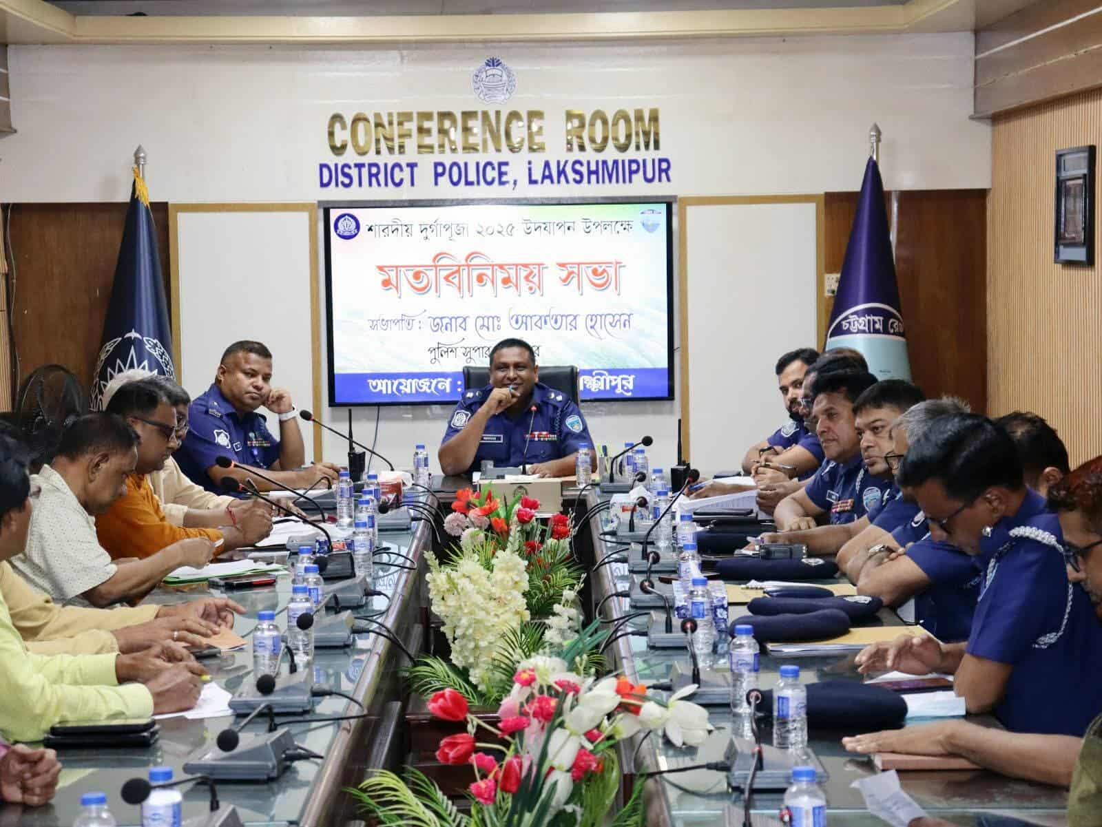 অদ্য ২২ সেপ্টেম্বর ২০২৫ খ্রি. তারিখ জেলা পুলিশ, লক্ষ্মীপুর কর্তৃক আয়োজিত শারদীয় দুর্গাপূজা ২০২৫ উদযাপন উপলক্ষে মতবিনিময় সভার আয়োজন করা হয়।