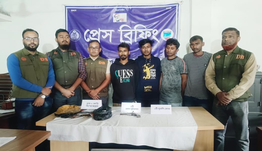 যশোরের মণিরামপুরে ডিবি অভিযান চালিয়ে চারক কথিত চরমপন্থিকে আটক করা হয়েছে। এসময় তাদের কাছথেকে একটি ওয়ান শুটারগান, একটি বোমা ও দুই কেজী বিস্ফোরকদ্রব্য উদ্ধার করা হয়েছে। ঘটনাটি ঘটেছে মঙ্গলবার মধ্য রাতে ডিবির এসআই মফিজুল ইসলামের নেতৃত্বে একটি টিম মণিরামপুর কুলটিয়া ও মহিষদিয়া গ্রামের অভিযান চালিয়ে তাদেরকে আটক করে।আটককৃতরা হলেন, অভয়নগর উপজেলার ডহরমষিহাটি গ্রামের অমিতাভ বিশ্বাস, মণিরামপুর উপজেলার মহিষদিয়া গ্রামের প্রতাপ মন্ডল, নেহালপুর গ্রামের জাহিদ হাসান ও মহিষদিয়ার পান্তধর। এঘটনায় মণিরামপুর থানায় পৃথক দুইটি মামলা হয়েছে।ডিবির ওসি রুপন কুমার সরকার জানান, আসামিরা চরমপন্থি সংগঠনের সদস্য পরিচয় দিয়ে এলাকায় আধিপত্য বিস্তার, চাঁদাবাজি, মাছের ঘের দখলসহ নানা ধরণের অপরাধের সাথে জড়িত। শুধুই মণিরামপুরই না, তারা অভয়নগরের বিভিন্ন এলাকায় রয়েছে তাদের পদচারণা। তাদের মধ্যে অমিতাভ বিশ্বাসের বিরুদ্ধে সুন্দলি ইউনিয়নের উত্তম মেম্বর হত্যামামলাসহ একাধিক মামলা রয়েছে। তাদের অন্য সহযোগিদের আটকে অভিযান অব্যাহত রয়েছে।