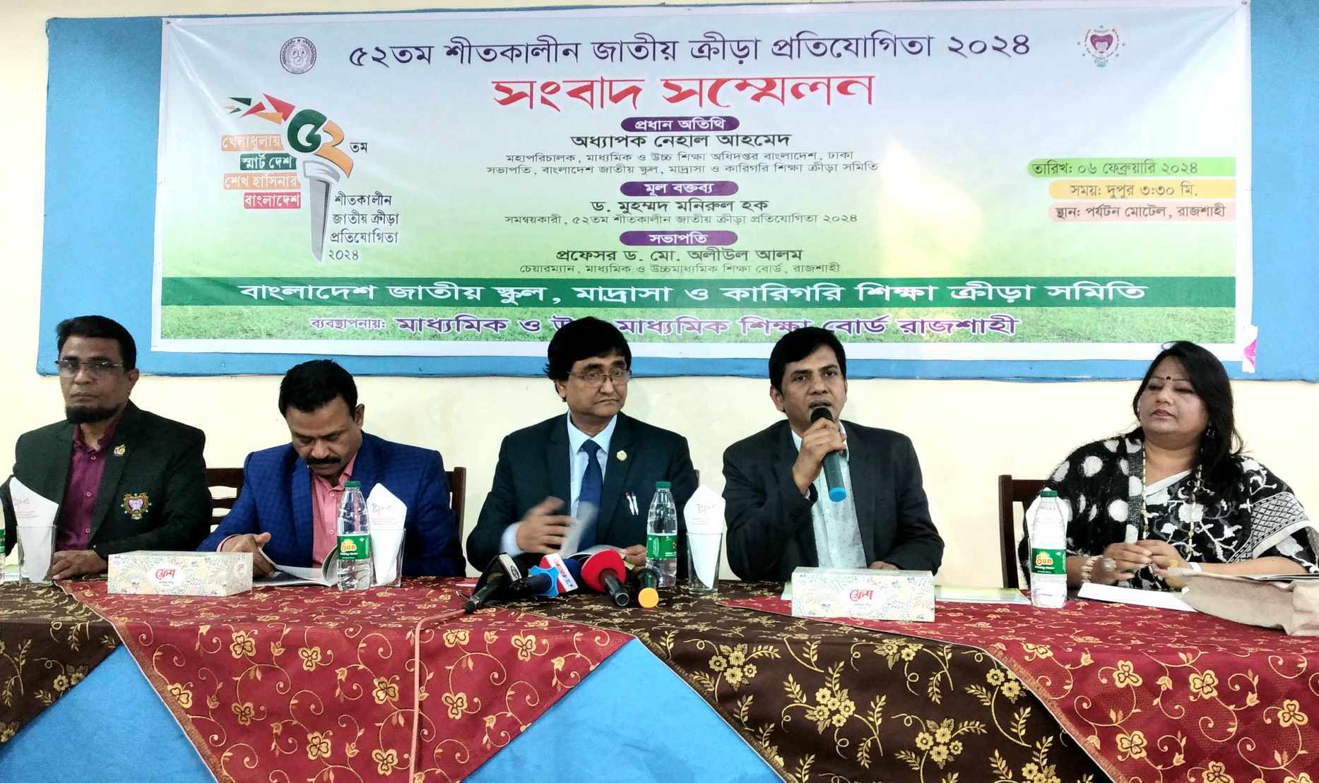 মঙ্গলবার (৬ ফেব্রুয়ারি) দুপুর সাড়ে ৩টায় রাজশাহী পর্যটন মোটেলে আয়োজিত সংবাদ সম্মেলনে মাধ্যমিক ও উচ্চ মাধ্যমিক শিক্ষা বোর্ড রাজশাহীর চেয়ারম্যান প্রফেসর ড. মো: অলীউল আলমের সভাপতিত্বে ৫২ তম শীতকালীন জাতীয় ক্রীড়া প্রতিযোগিতা-২৪’র সমন্বয়কারী ড. মুহম্মদ মনিরুল হক সাংবাদিকদের এসব তথ্য জানান।