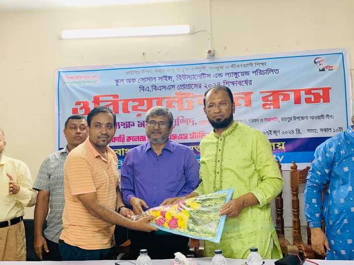 শুক্রবার (৭ জুন) সকালে আনুষ্ঠানিকতার মধ্য দিয়ে কলেজ হলরুম মিলনায়তনে আনন্দঘন পরিবেশে ওরিয়েন্টেশন ক্লাশ করা হয়। রায়পুর সরকারি কলেজ প্রফেসর মোহাম্মদ আমানত হোসেন দিদার এর সভাপতিত্বে আলোচনা সভায় উপস্থিত ছিলেন বাউবির কমিল্লার অঞ্চলিক পরিচালক টিএম আহমেদ হুসেইন, রায়পুর উপজেলা চেয়ারম্যান অধ্যক্ষ মামুনুর রশিদ, পৌর মেয়র গিয়াস উদ্দিন রুবেল ভাট, বাউবির লক্ষ্মীপুর জেলার সহকারি পরিচালক, বাহার উদ্দিন মজুমদার, রায়পুর পৌর আওয়ামীলীগের সাধারণ সম্পাদক আবু সাঈদ জুটন, শিক্ষক মাহাবুবুর রহমান, জয়দেব চন্দ্র নাথ,আরো উপস্হিত ছিলেন বিএ বিএসএস ডিগ্রি কোর্সের সমন্বয়ক মাহমুদুন নবী ইমরান, টিউটর ( ইংরেজি) ও প্রভাযক প্রমুখ।