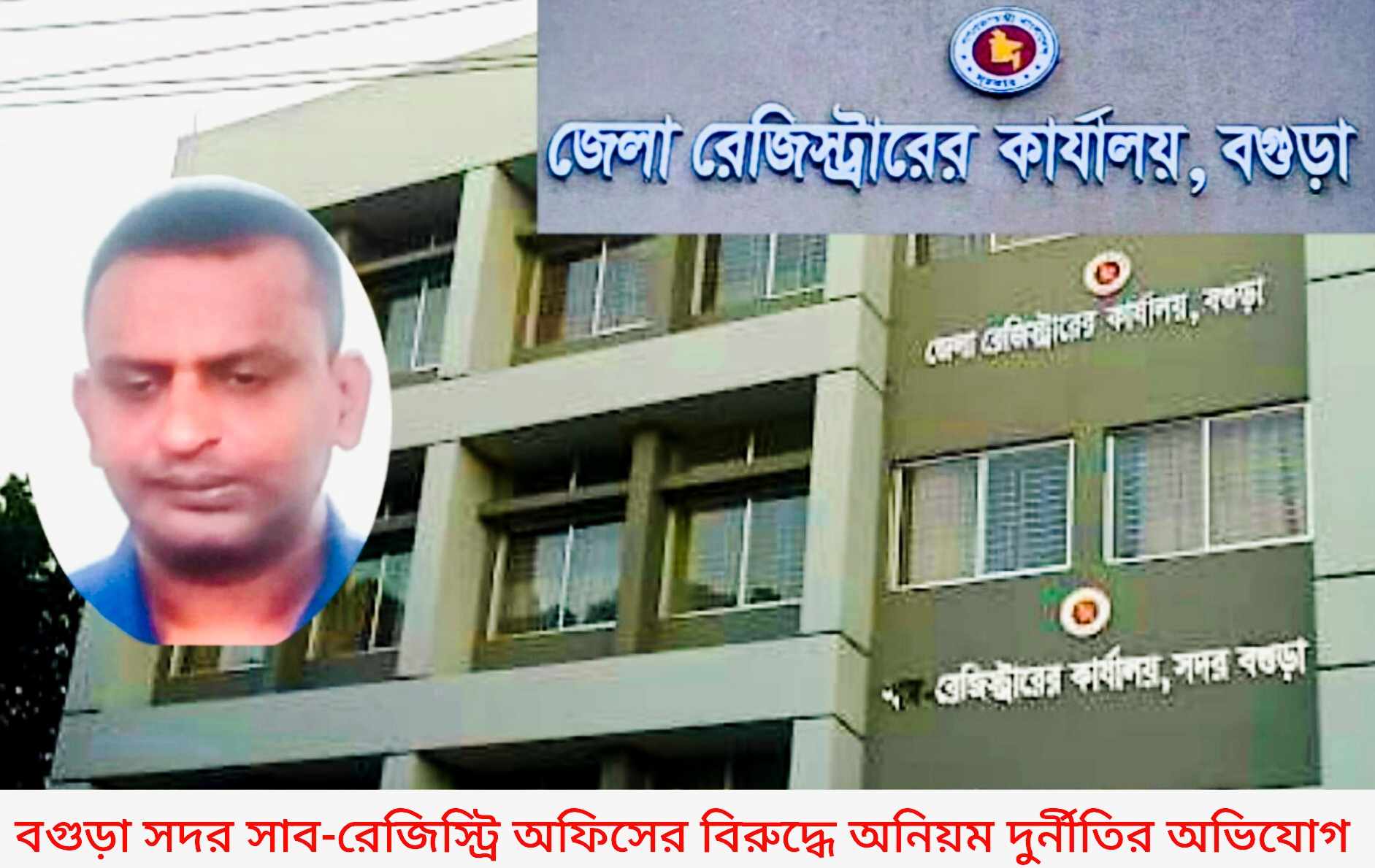 বগুড়ায় গতকাল সদর সাব-রেজিস্ট্রি অফিসে অনিয়ম দুর্নীতির কারণে তিন দিন যাবত দলিল লেখা বন্ধ এবং দলিল রেজিস্ট্রি না হওয়ার অভিযোগ উঠেছে। অভিযোগ সূত্রে জানা যায়,অফিস সহকারী তানজিল আল সরকারের বিরুদ্ধে। উক্ত ব্যক্তির উপরে অর্পীত দায়িত্বের বাহিরে সাব-রেজিস্ট্রারের উপরে অর্পিত দায়িত্বের কাজ যেমন দলিল যাচাই-বাছাই বা চেক করা,দলিলের বিষয়ে কাগজপত্র বিভিন্ন ভুল-ভ্রান্তির অযুহাতে অনিয়ম তান্ত্রিক ভাবে অবৈধ অর্থ দাবী করে আসছেন এবং অযথা দলিল লেখকসহ আগত আপামর জন-সাধারনের সাথে খারাপ আচরণ ও দুর্ব্যবহার করেন। বিভিন্ন কাজের দোহাই দিয়ে দলিল রেজিস্ট্রি করে না। সেই কারনে বাংলাদেশ দলিল লেখক সমিতি বগুড়া সদর শাখার সকল দলিল লেখকগণ গত ৭জুলাই থেকে অনির্দিষ্ট কালের জন্য দলিল রেজিস্ট্রির কার্যক্রম বন্ধ ঘোষণা করেছে। অভিযুক্ত ব্যক্তির কাছে অভিযোগের বিষয়টি জানতে চাইলে,অফিস সহকারি তানজিল আল সরকার বিষয়টি অস্বীকার করে অবগত নয় বলে জানান এবং বিষয়টি উর্দ্বোতন কর্তৃপক্ষ কোন নোটিশ বা মৌখিক ভাবেও জানাননি বলে জানান তিনি। এতে বাংলাদেশ দলিল লেখক সমিতি বগুড়া সদর শাখার সভাপতি মকছুদুল ও সাধারণ সম্পাদক জরুল ইসলাম টুকু জানান যে,বিষয়টি নিয়ে জেলা রেজিস্টারের সাথে সমন্বয়ের জন্য আলোচনা চলছে। এবিষয়ে বগুড়া জেলা রেজিস্টার জানায়,এই অভিযোগের বিষয়ে তিনি কোন কিছু জানেন না তবে অভিযোগটি হাতে পেলে যথাযথ বিধি ব্যবস্থা গ্রহণ করা হবে বলে জানান তিনি।