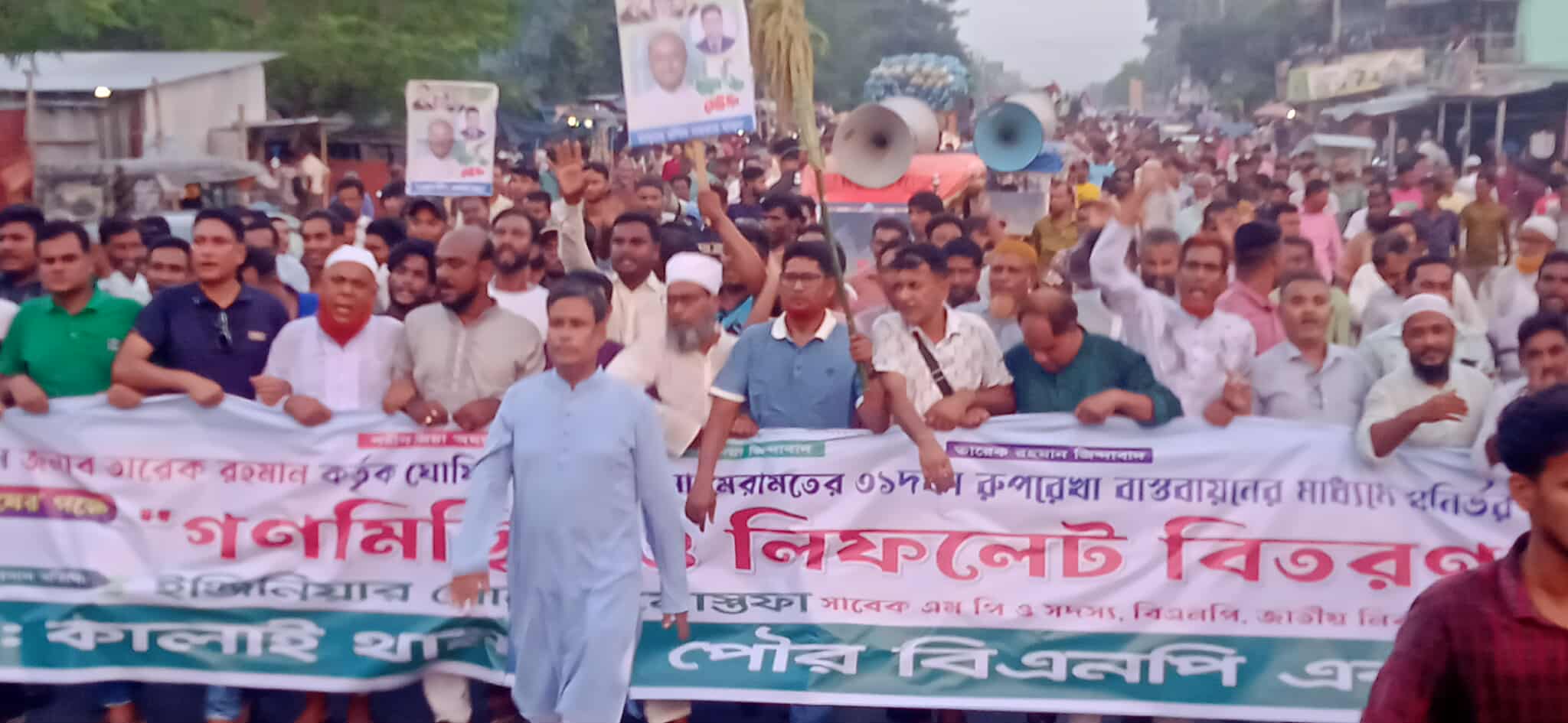 কালাই থানা ও পৌর বিএনপিসহ ছাত্রদল, যুবদল, স্বেচ্ছাসেবক দলের বিপুল সংখ্যক নেতাকর্মীর অংশগ্রহণে এই গণমিছিলটি কালাইয়ের প্রধান সড়ক ও গুরুত্বপূর্ণ স্থানসমূহে অনুষ্ঠিত হয়। নেতাকর্মীরা সরকারের বিরুদ্ধে স্লোগান দেন এবং জনগণের হাতে বিএনপি’র বার্তা সম্বলিত লিফলেট বিতরণ করেন।১২/১০/২০২৫