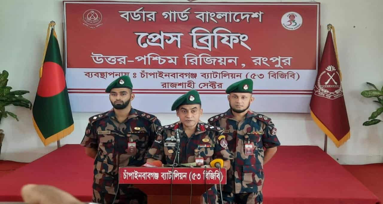 সোমবার (১৩ অক্টোবর) বেলা ১১ টার সময় চাঁপাইনবাবগঞ্জ ৫৩ বিজিবি ব্যাটালিয়নের সদর দপ্তরে উত্তর-পশ্চিম রিজিয়ন, রংপুরের আয়োজনে অনুষ্ঠিত এক সংবাদ সম্মেলনে এ তথ্য জানান ব্যাটালিয়ন অধিনায়ক লে. কর্নেল কাজী মোস্তাফিজুর রহমান।