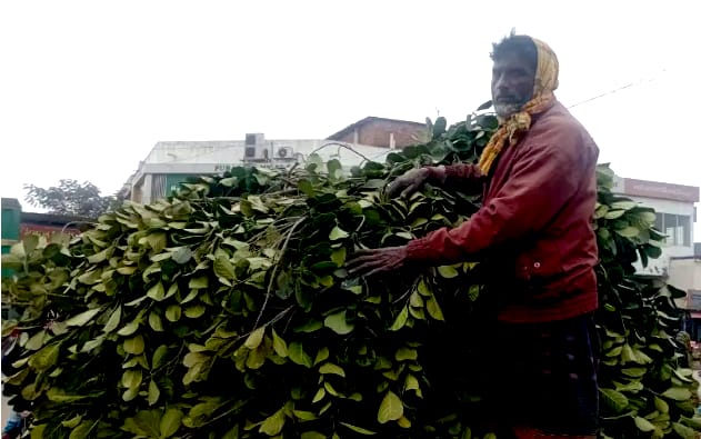 দিনাজপুরের ঘোড়াঘাটে কাঁঠালের পাতা বিক্রি করে সংসারের স্বচ্ছলতা এনেছে ৫৫ বছর বয়সি ছকমল। শুধু পাতা বিক্রি করেই মাসে তার আয় ৩০হাজার টাকা। প্রতিদিন ভ্যান ভর্তি কাঠাল পাতা নিয়ে তিনি ঘোড়াঘাট পৌর শহরের হাট বাজারে বিক্রয় করেন। চাষাবাদ বাড়ায় ফাঁকা নেই মাঠঘাট, বাধ্য হয়েই যারা ছাগল পালন করছেন তারা কাঠল পাতার উপর নির্ভরশীল হয়ে পরছেন। ছকমল পৌর শহরের সাহেবগঞ্জ এলাকার বাসিন্দা। তিনি দীর্ঘ ৮বছর ধরে কাঠাল পাতা বিক্রি করছেন। যে কারনে ছাগল চাষিরা তার কাছে পরিচিত একটি মুখ। ঘোড়াঘাট আজাদমোডে ভ্যান ভর্তি কাঠাল পাতা নিয়ে ক্রেতার জন্য অপেক্ষা করেন। তিনি জানান, প্রতিদিন ১হাজার থেকে ১২শ টাকা বিক্রি হয়। প্রতিদিন সকাল ৮টা থেকে দুপুর পর্যন্ত কাঠাল পাতা বিক্রি হয়। তার ভ্যানে ২শর বেশি পাতার আঁটি নিয়ে আসেন প্রতিটি আটি ২০ থেকে ২৫ টাকা বিক্রি হয়। এতে করে তার প্রতি দিন প্রায় হয় ১হাজার থেকে ১২শ টাকা। স্ত্রী, ছেলে ও একটি মেয়ে নিয়ে সুখেই সংসার চলছে বলে তিনি জানালেন। পাতা সংগ্রহের কথা জানতে চাইলে তিনি জানান, বিভিন্ন এলাকার কাঠাল বাগানে গিয়ে মালিকের সাথে গাছ চুক্তি করে পাতা সংগ্রহ করি। তার একজন বড় ক্রেতা পাশ্ববর্তি বাগদা বাজারের লালমিয়া জানান, তার ২৫টি ছাগল রয়েছে ঘাসের অভাবে তাকে প্রতিদিন ১৮ থেকে ২০টি আঁটি কিনতে হয়। উপজেলা প্রণিসম্পদ কর্মকর্তা রবিউল ইসলাম বলেন, কাঠাল পাতা ছাগলে জন্য খুবই পুষ্টিকরও প্রিয় খাবার যা তাদের রুচি বাডায় প্রোটিন সরবরাহ করতে ও সার্বিক স্বাস্থ্য ও বৃদ্ধির জন্য উপকারী। তিনি আরও জানান শুধু কাঠাল পাতা নয়, অন্যান্য খাবার যেমন ঘাস খড় ও দানাদার খাদ্যও সমানভাবে দেওয়া উচিত। তবে গবাদি পশুর তেমন বিচরনভুমি না থাকায় প্রভাব পড়েছে ঘাস ও কাঠাল পাতার উপর।