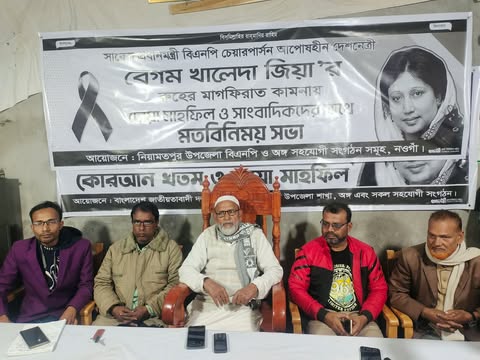 শেষে সাবেক প্রধানমন্ত্রী বিএনপি চেয়ারপার্সন দেশনেত্রী বেগম খালেদা জিয়ার রুহের মাগফিরাত কামনায় বিশেষ দোয়া করেন নিয়ামতপুর উপজেলা বিএনপির ধর্ম বিষয়ক সম্পাদক বদিউজ্জামান।